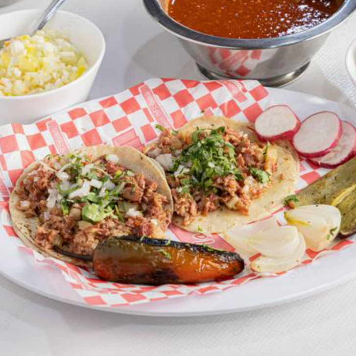 Tacos rellenos de una mezcla de carnes (cabeza).
