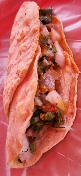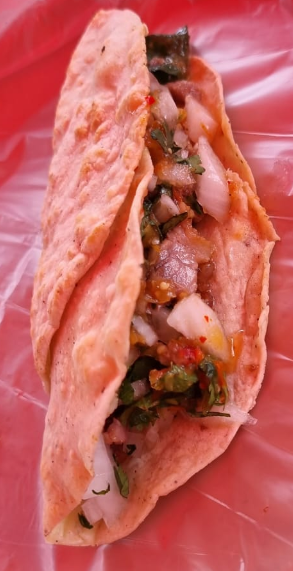 Bistec de cerdo combinado con chorizo, servido en tortilla de harina con queso fundido, cilantro y cebolla.