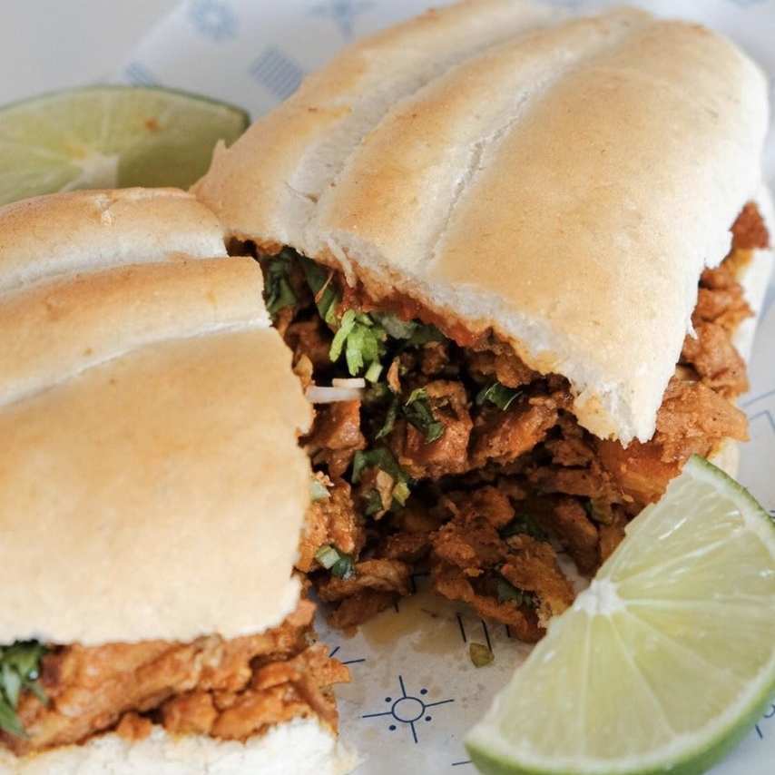 Consiste en un bolillo 🥖calientito con queso 🧀 fundido rellena de pastor 🥩 y piña 🍍 acompañada de cilantro 🌿 cebolla 🧅 salsa 🍝 limones 🍋 ensalada y chilitos 🌶️ asados al gusto 🤤