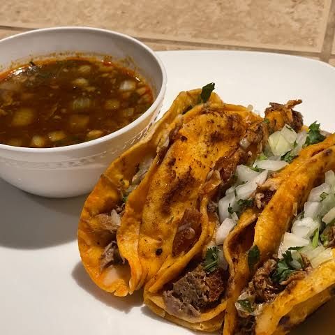 1/2 Kilo de birria de res. incluye 1 litro de consomé y guarniciones (salsas, verdura, limones).