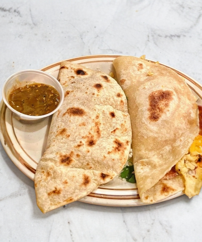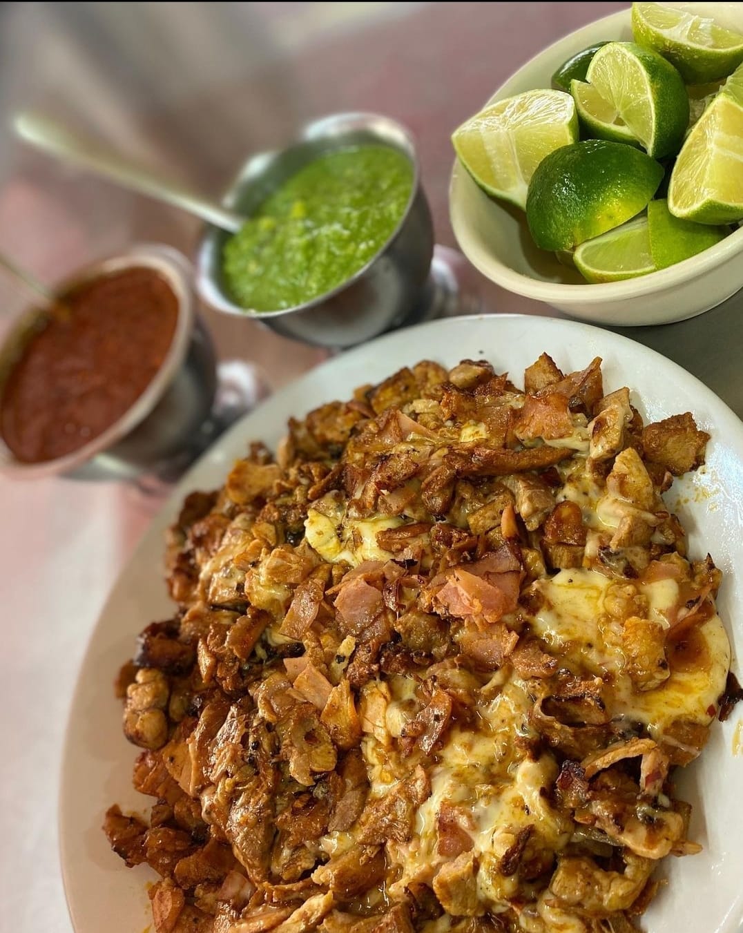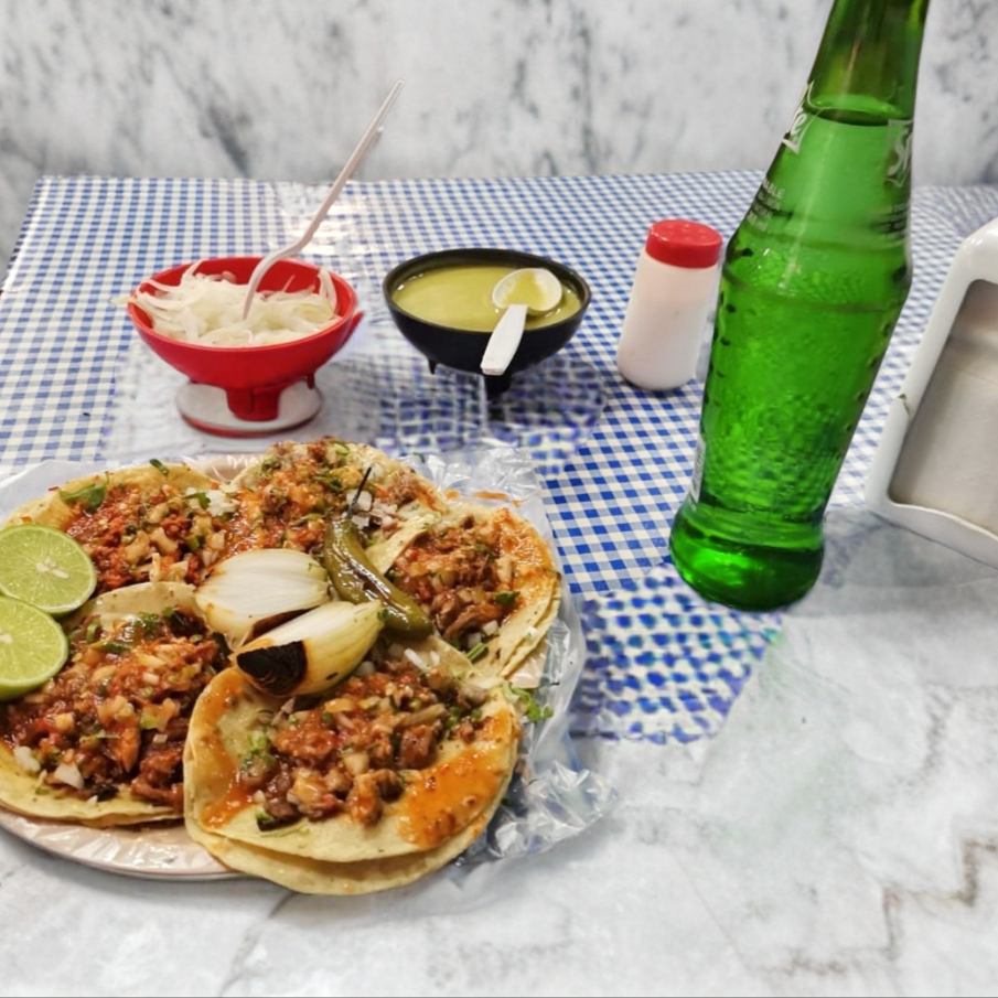 Bistec chorizo costilla y pastor, con verdura y tortillas aparte.