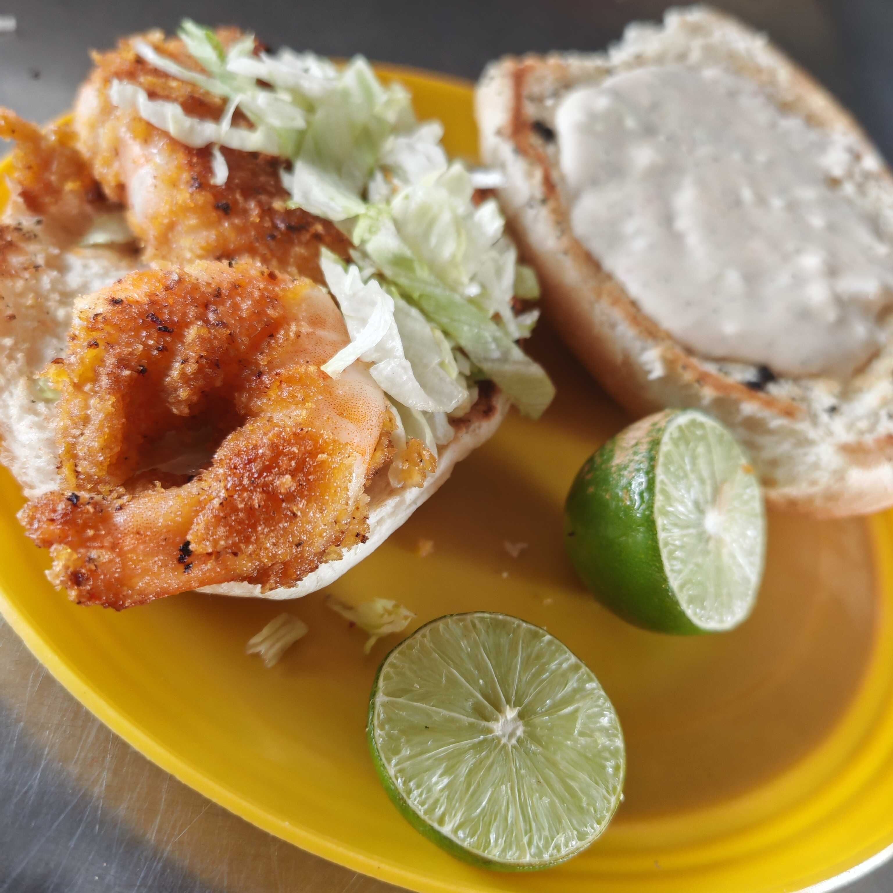 Camaron empanizado, lechuga, salsa roja, aderezo especial
