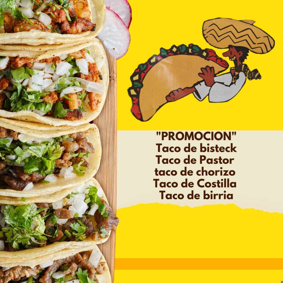 Taco de Bistec*1 + Taco de Chorizo*1 + Taco de Costilla*1 + Taco de Pastor*1 + Taco de Birria*1