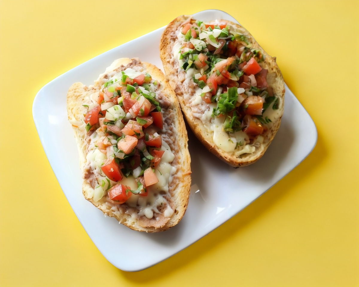 4 Piezas de bolillos con Frijoles, queso gratinado acompañado de salsa ala mexicana