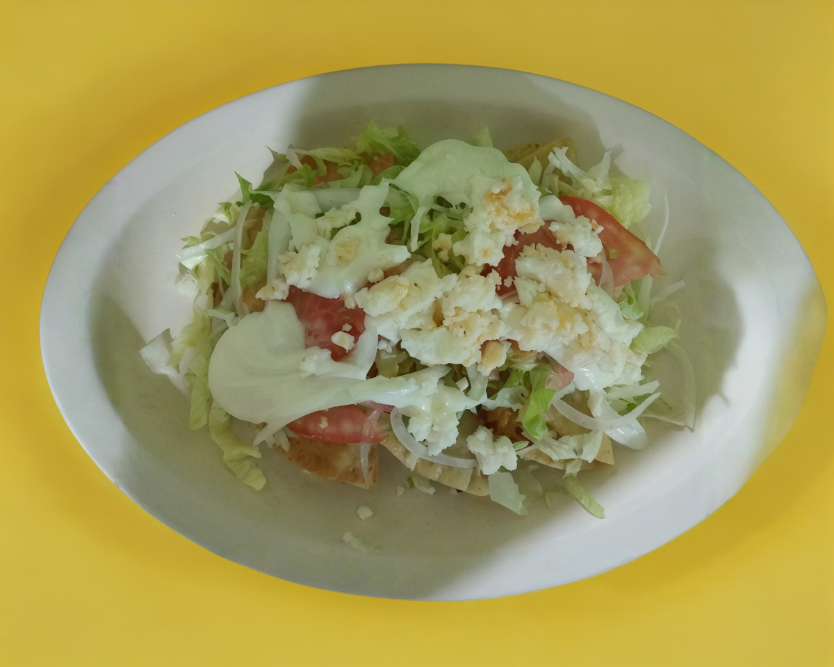 Acompañado de lechuga, cebolla, rábanos, salsa y tostadas