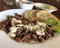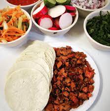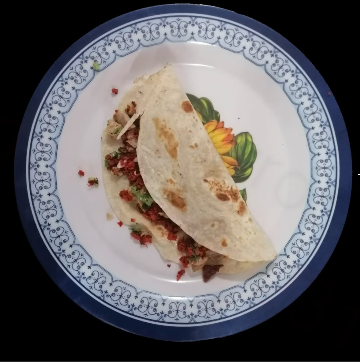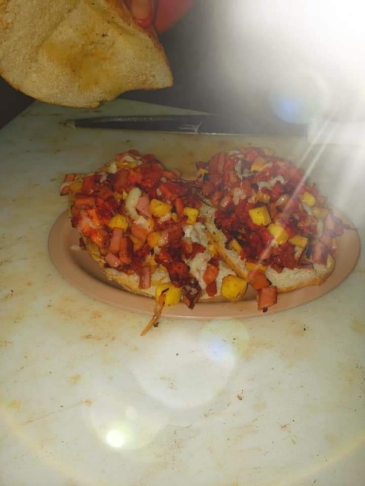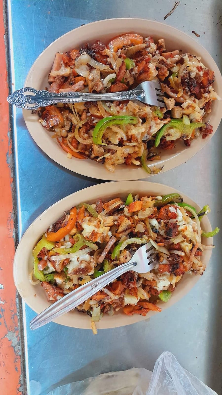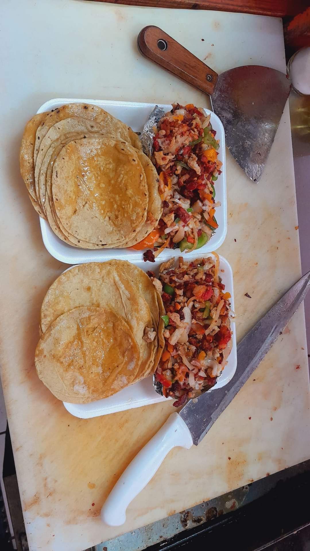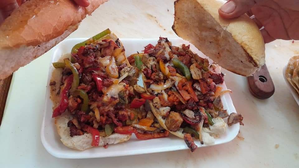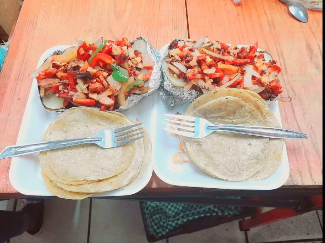 Morrón, cebolla, pastor, chorizo y guarnición.