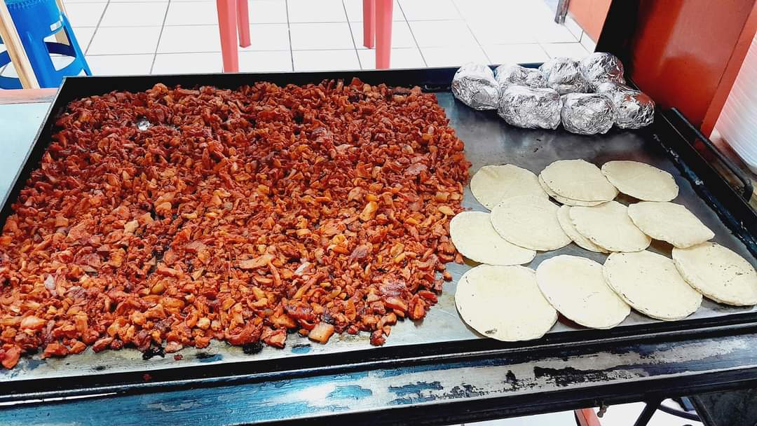 Tocino, morrón, cebolla, chuleta, pastor y queso.