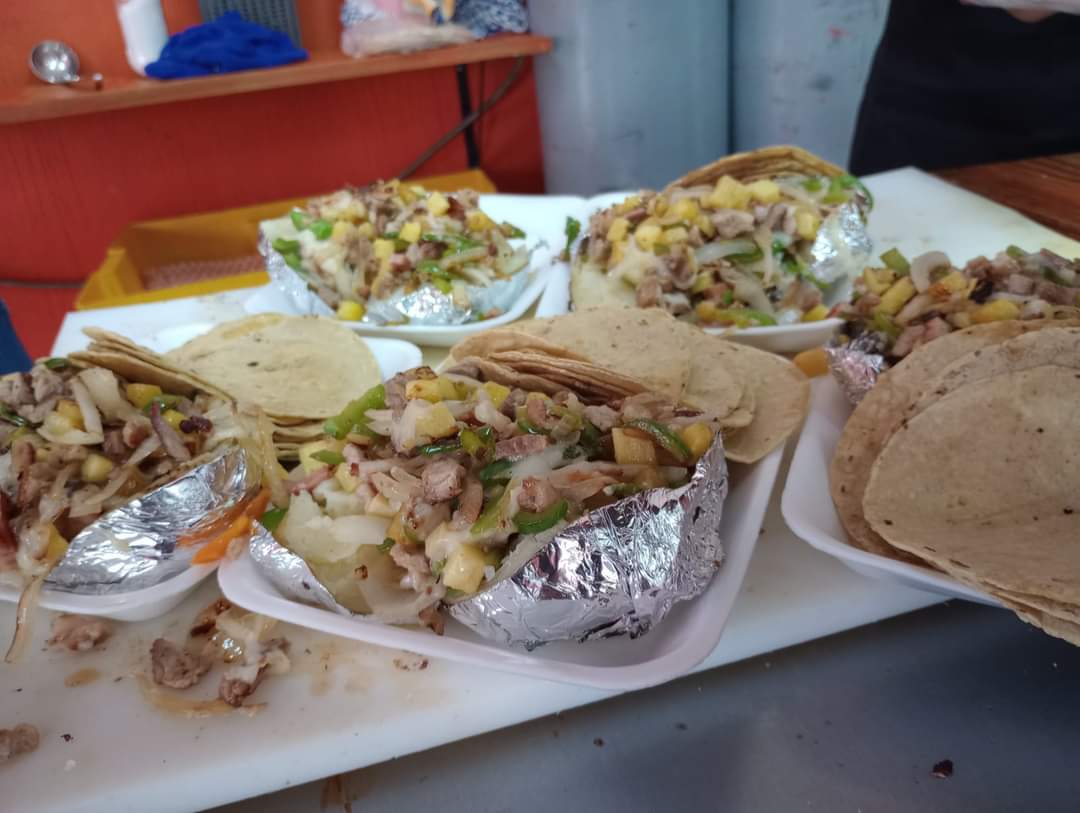 Bistec, pastor, chuleta, pollo, tocino, jamón, champiñones, morrón, piña, cebolla, jitomate y queso.