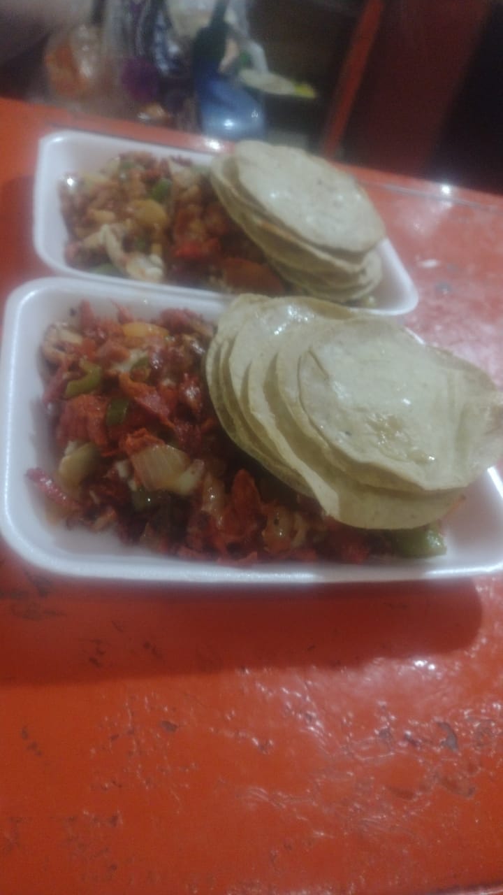 Poblano, cebolla, tocino, chuleta, pastor y queso