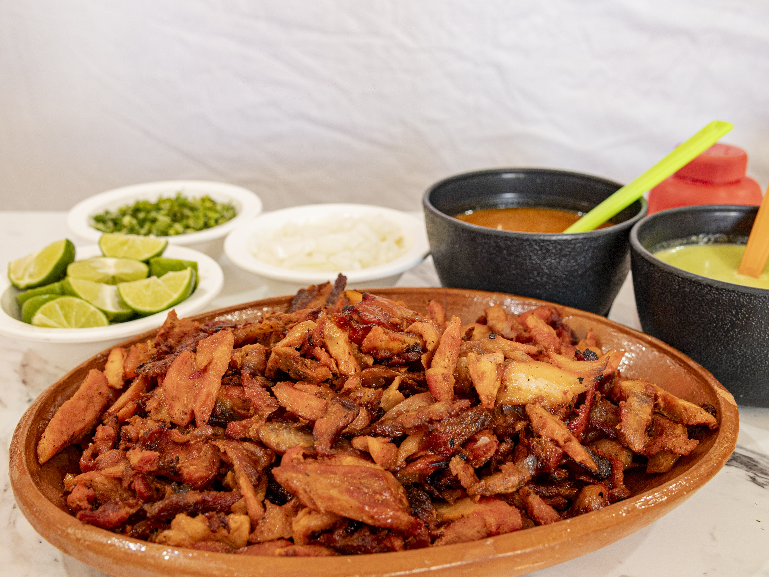 Incluye tortillas, verdura salsa y limones.
