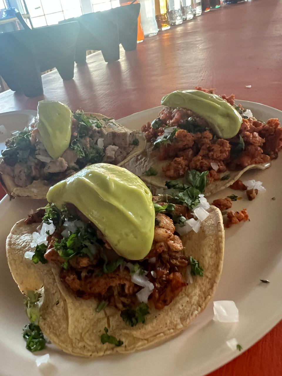 Doble tortilla con carne a elegir (90 gr.) acompañada de cebolla, cilantro, salsa y guacamole.