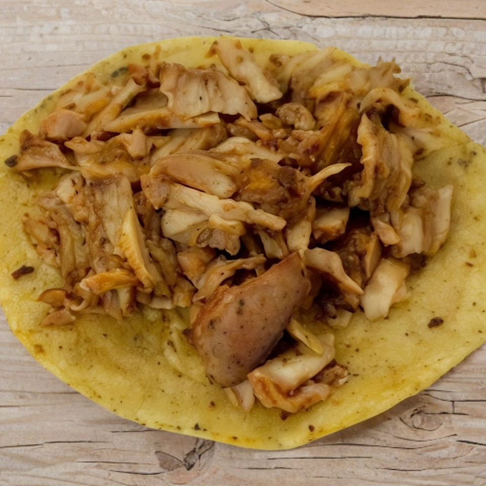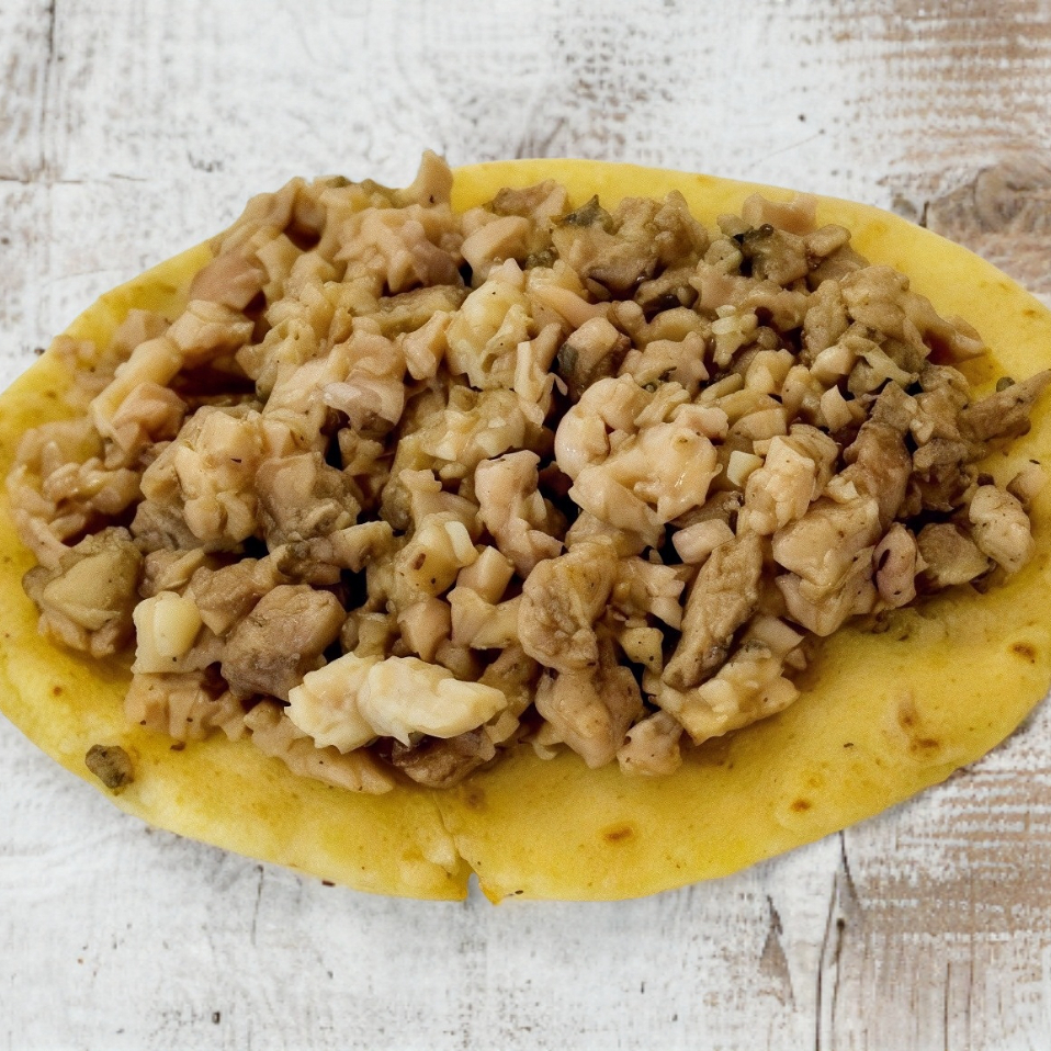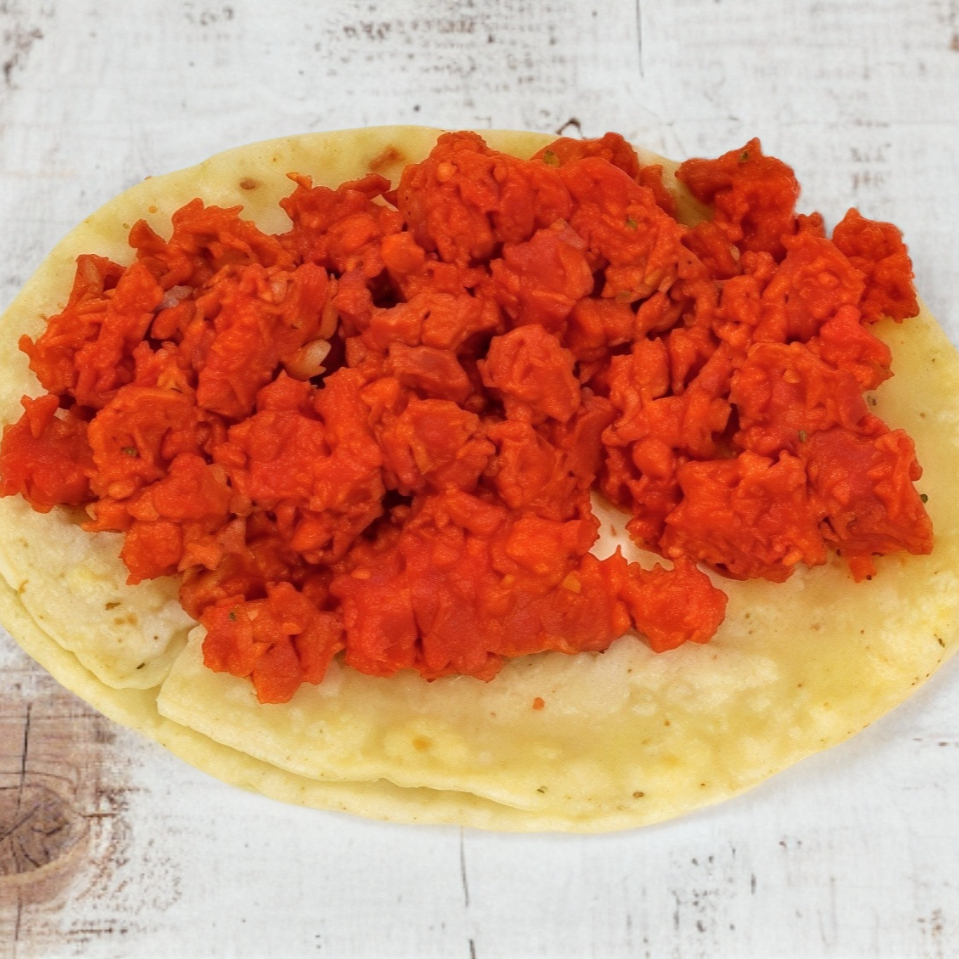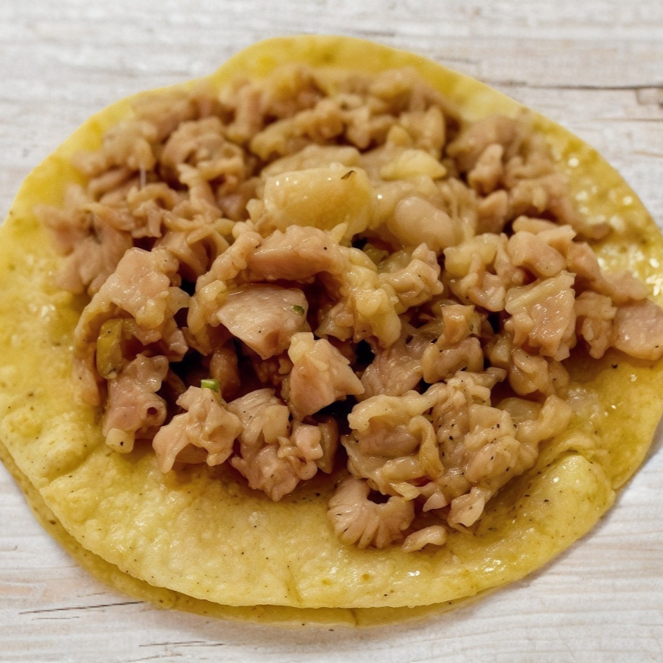 Tortilla de maíz, chorizo, cebolla y cilantro