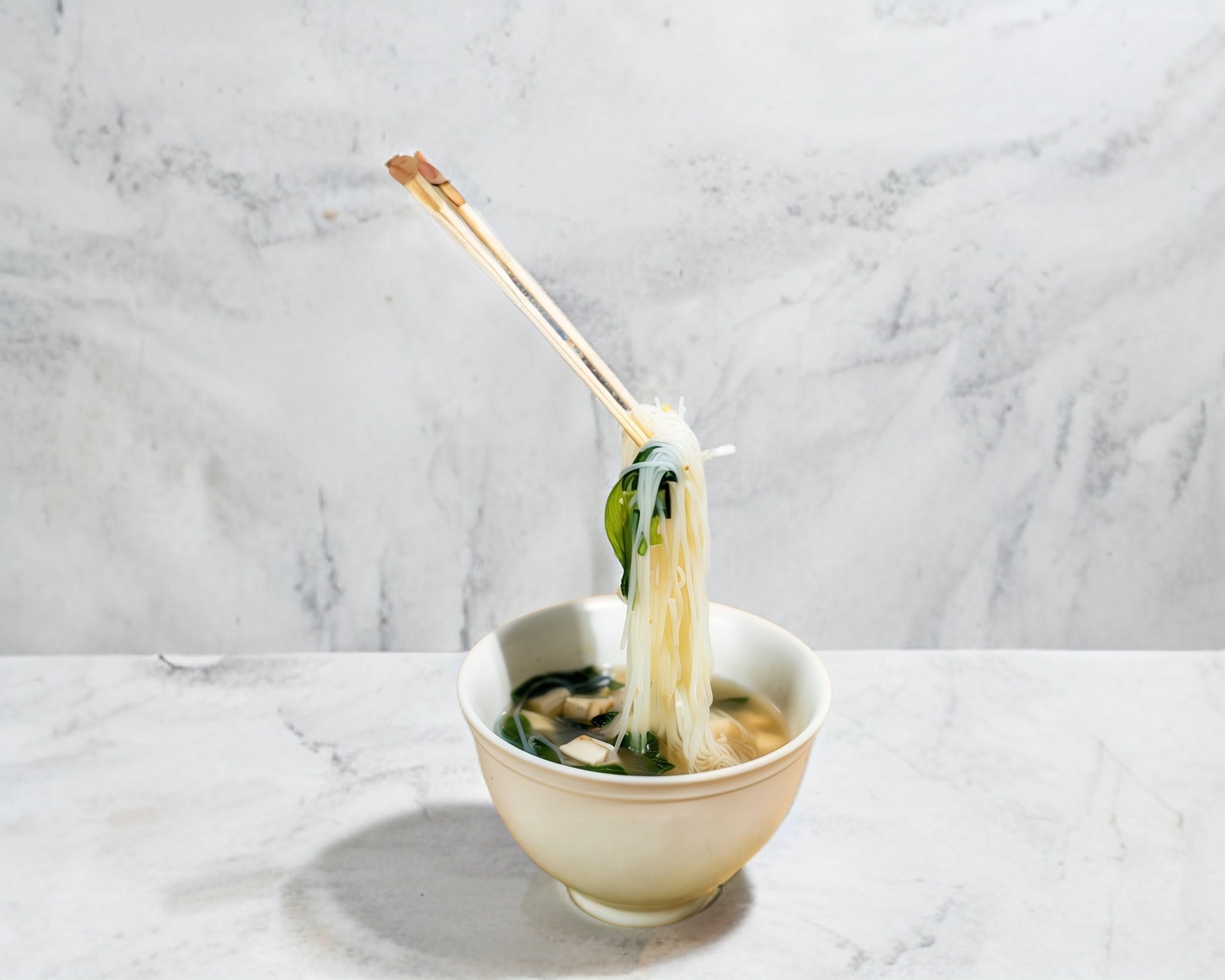 Pasta, miso, tofu, wakame, harusame y shichimi