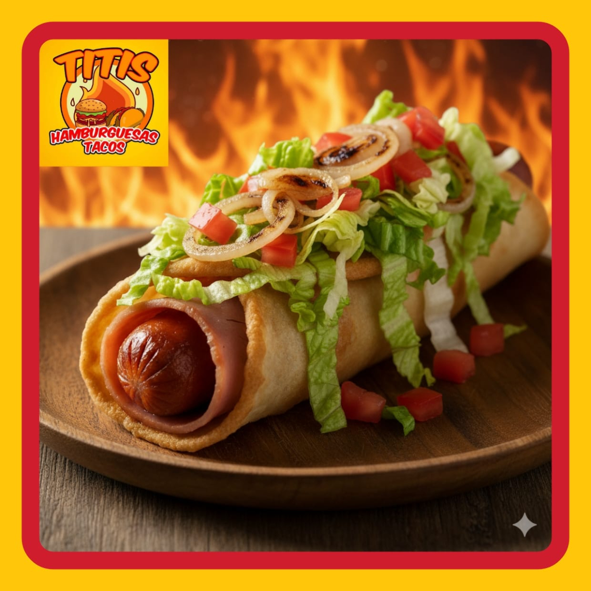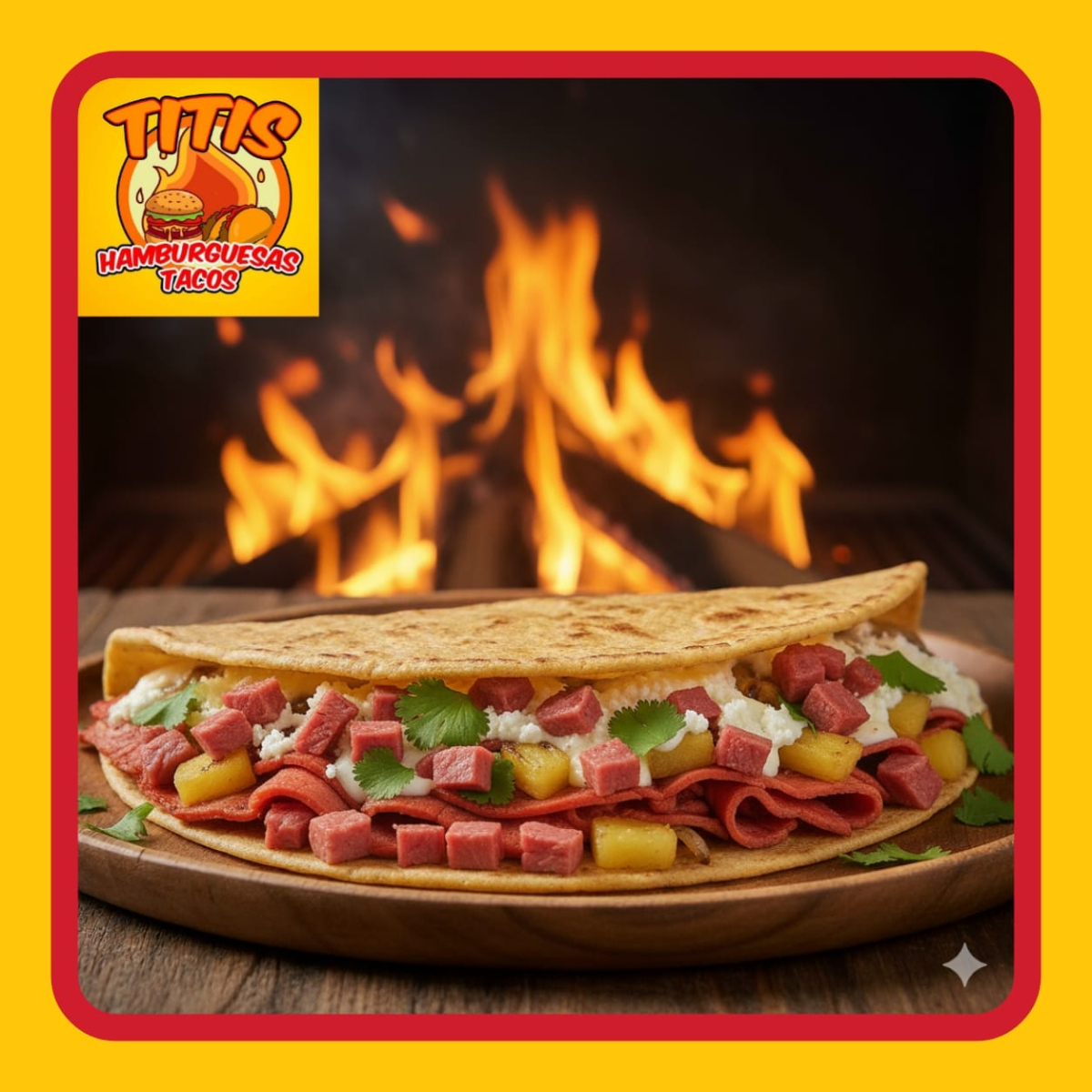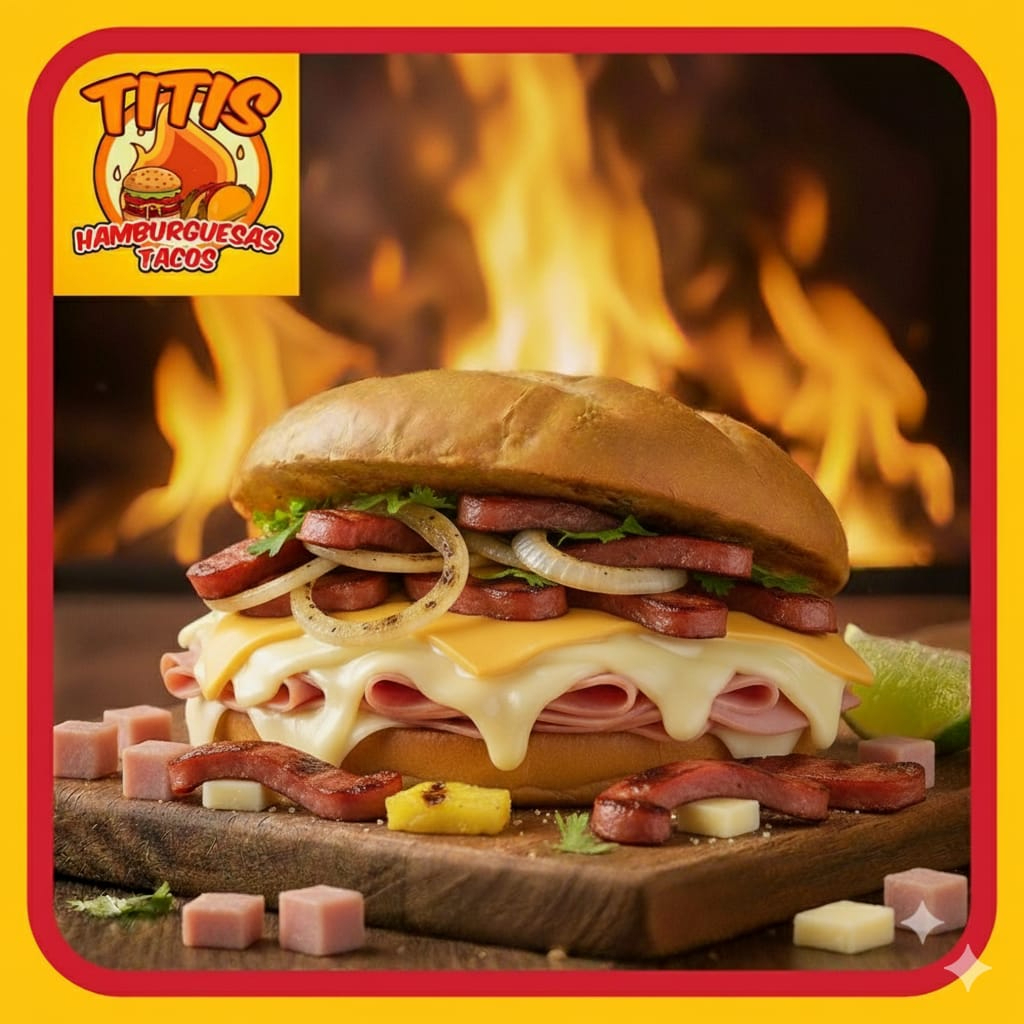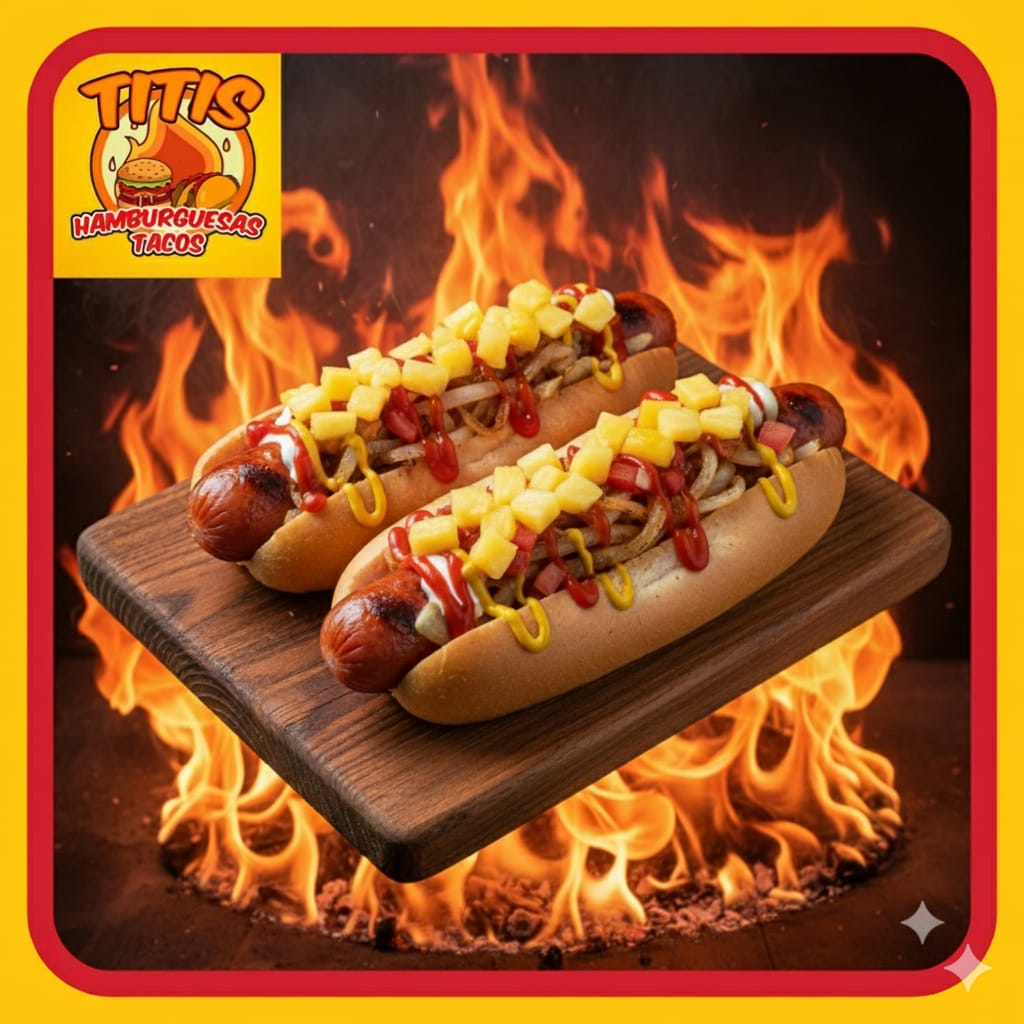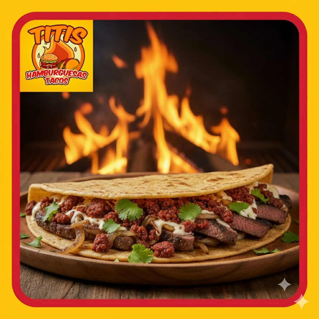 Tortilla de Arina , Jamon , Salchicha Fritos en Aceite , Preparados con cebolla asada , Jitomate , Lechuga ,Crema , Capsup ,Mostaza y Chimichurri