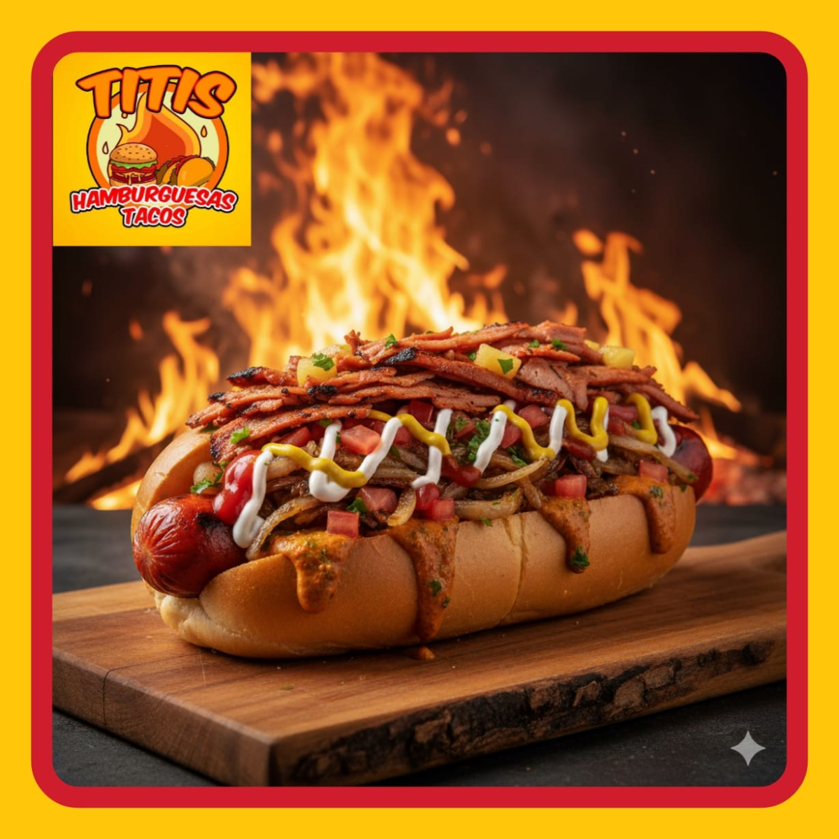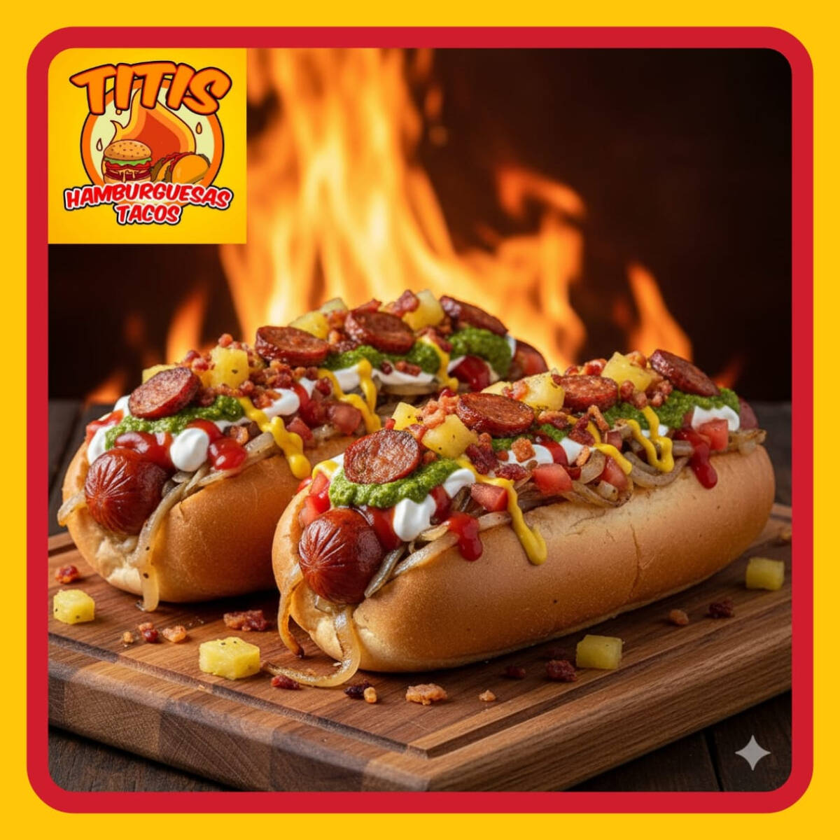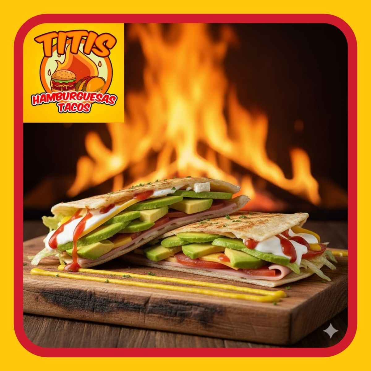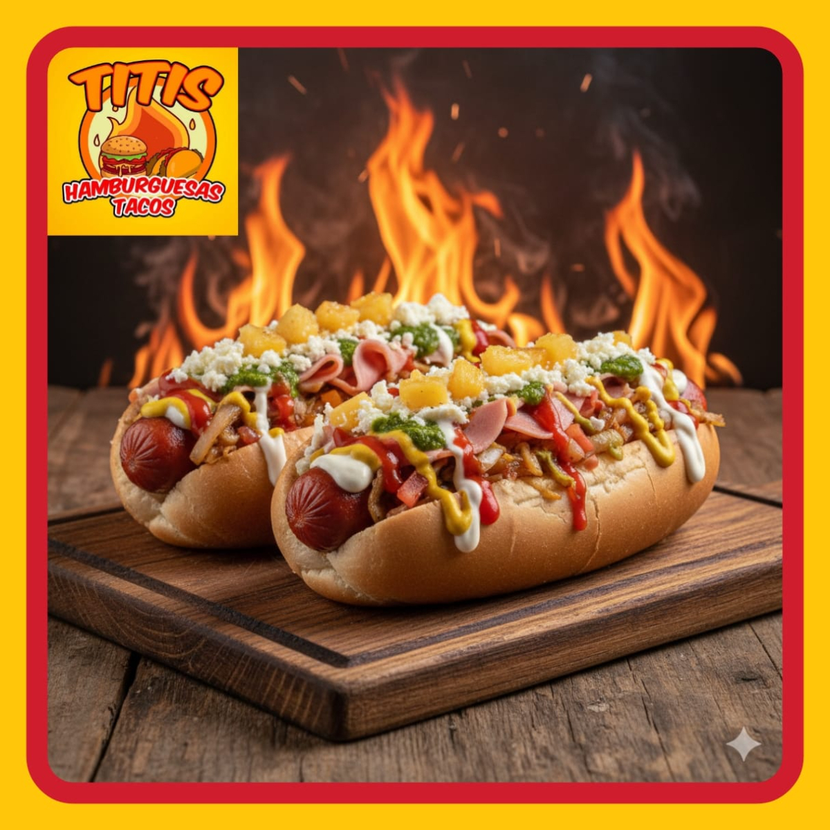 Tortilla de Arina , Jamon , Salchicha Fritos en Aceite , Preparados con cebolla asada , Jitomate , Lechuga ,Crema , Capsup ,Mostaza y Chimichurri