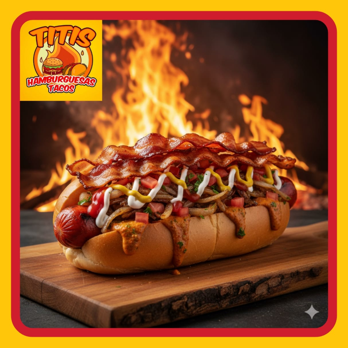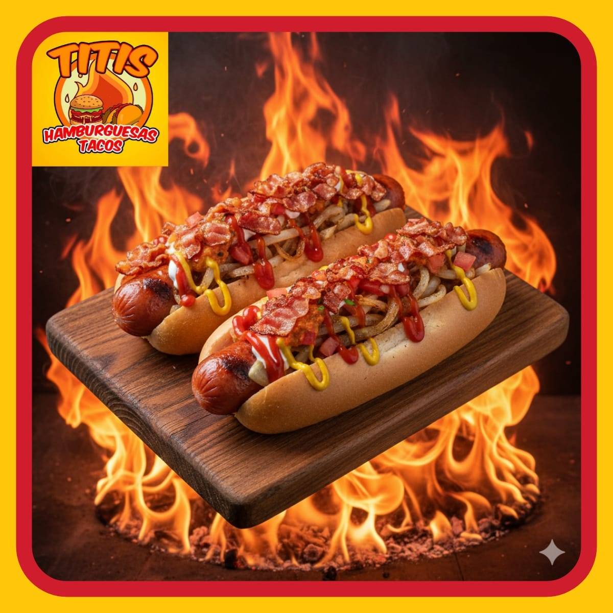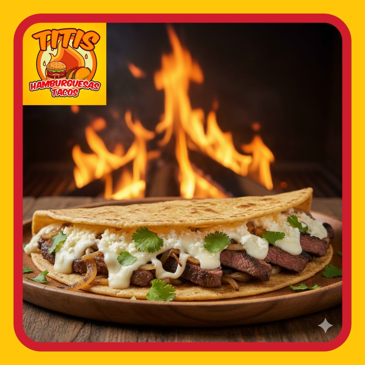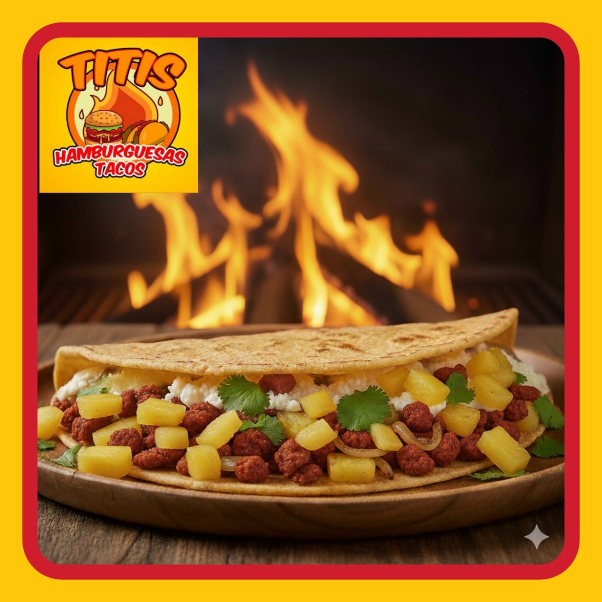 Tortilla de Arina , Jamon , Salchicha Fritos en Aceite , Preparados con cebolla asada , Jitomate , Lechuga ,Crema , Capsup ,Mostaza y Chimichurri