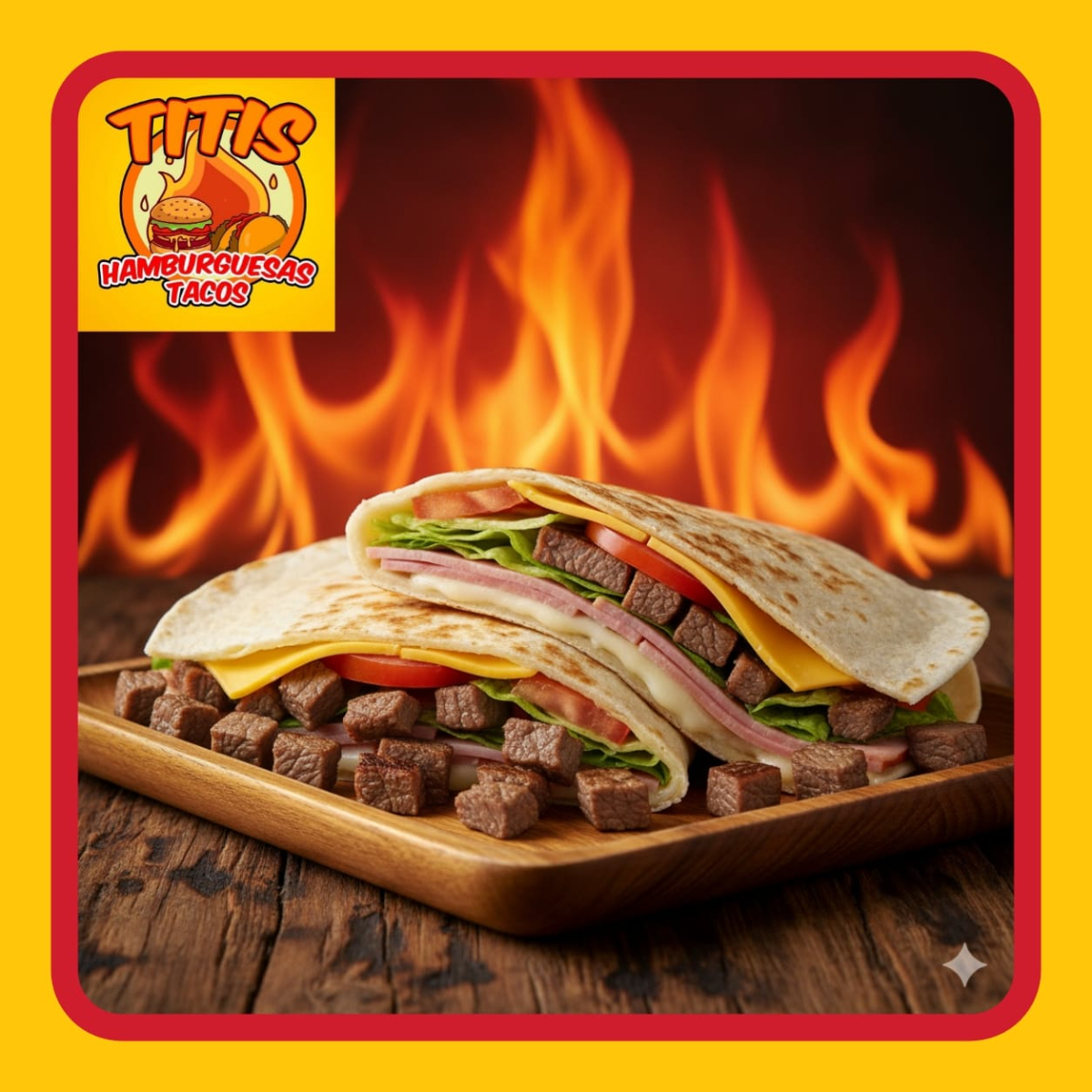 3 Piezas , Tortilla de Arina , Jamon , Salchicha Fritos en Aceite , Preparados con cebolla asada , Jitomate , Lechuga ,Crema , Capsup ,Mostaza y Chimichurri