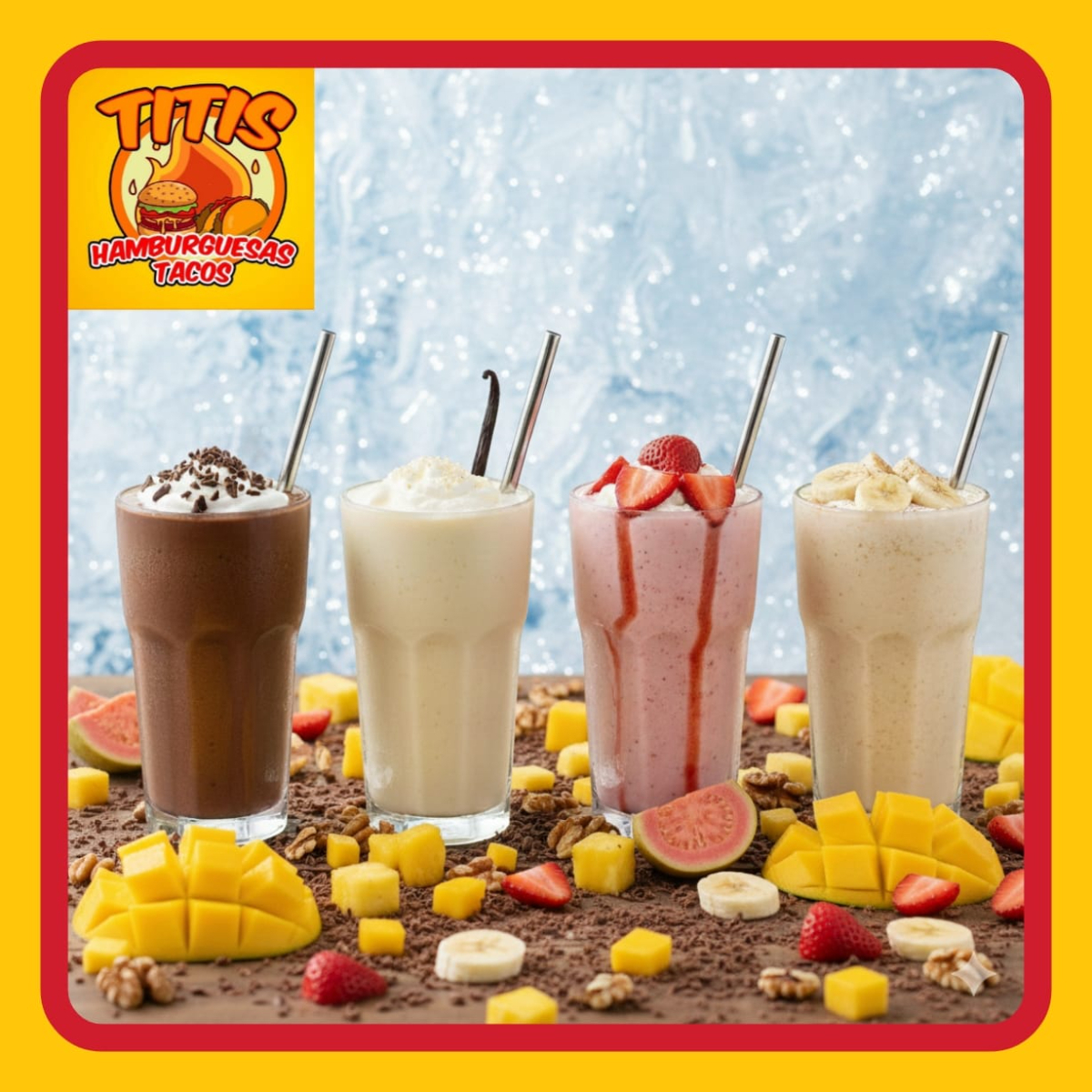 Licuados C/ Leche de Fruta Natural a elegir entre: Chocolate o Vainilla o Fresa o Papaya o Guayaba o Platano o Cajeta o Mango o Nuez o Cafe o Cereales