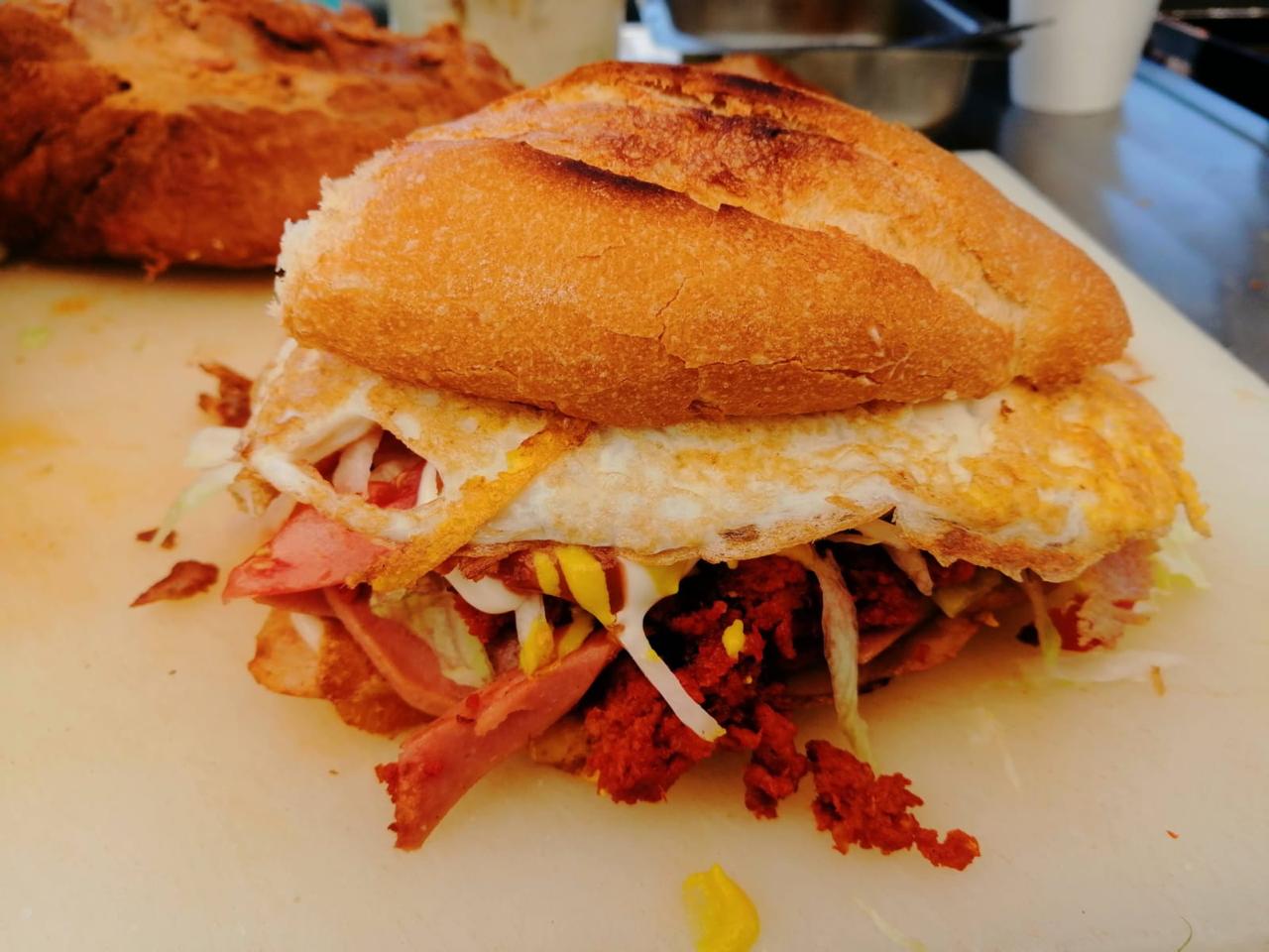 Chorizo, pierna, salchicha, 2 quesos, jamón, huevo, incluye verdura, aguacate y aderezos.