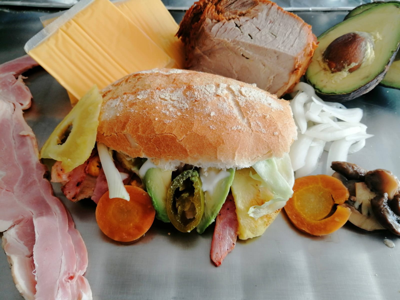Pierna, jamón, queso amarillo, incluye verdura, aguacate y aderezos.