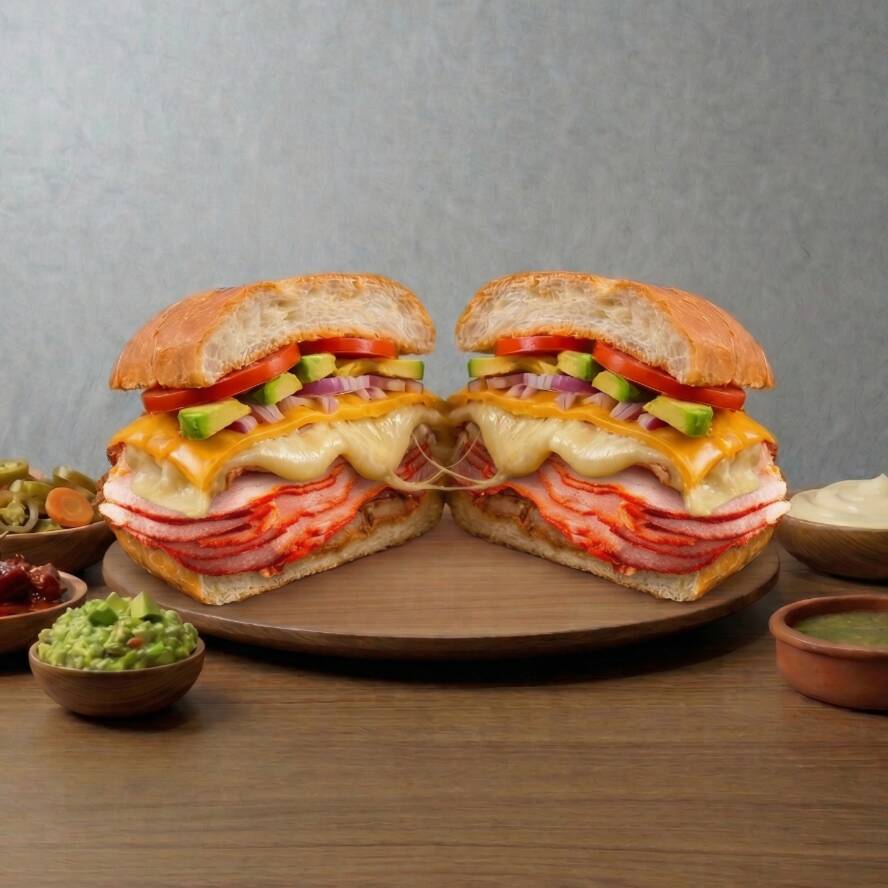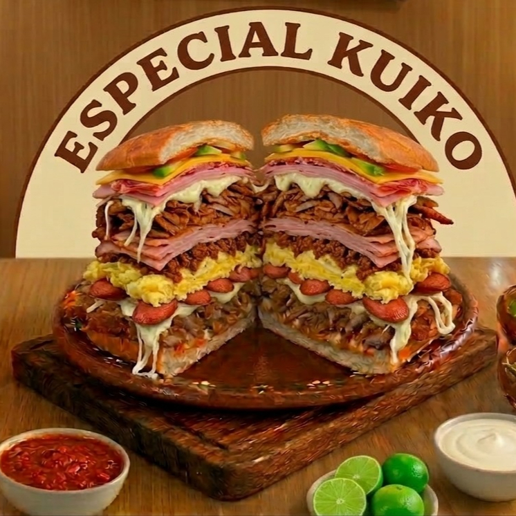 Una combinación poderosa: milanesa crujiente, jamón, jugosa pierna española y salchicha, creando una mezcla de sabores irresistible. Se acompaña con quesillo fundido y queso amarillo derretido que aportan una textura cremosa en cada mordida. Incluye aguacate, jitomate y cebolla, todo dentro de un pan dorado por fuera y suave por dentro. Completa, abundante y llena de sabor. 🔥