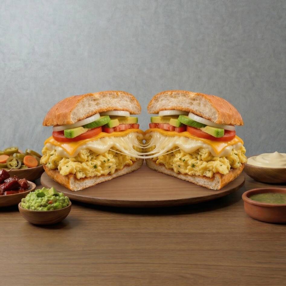 Una opción clásica y deliciosa: huevo revuelto recién preparado, acompañado de quesillo fundido que aporta una textura suave y cremosa en cada mordida. Se complementa con aguacate cremoso, jitomate fresco y cebolla, dentro de un pan dorado por fuera y suave por dentro. Sencilla, llenadora y perfecta para cualquier momento del día. 🍳🔥