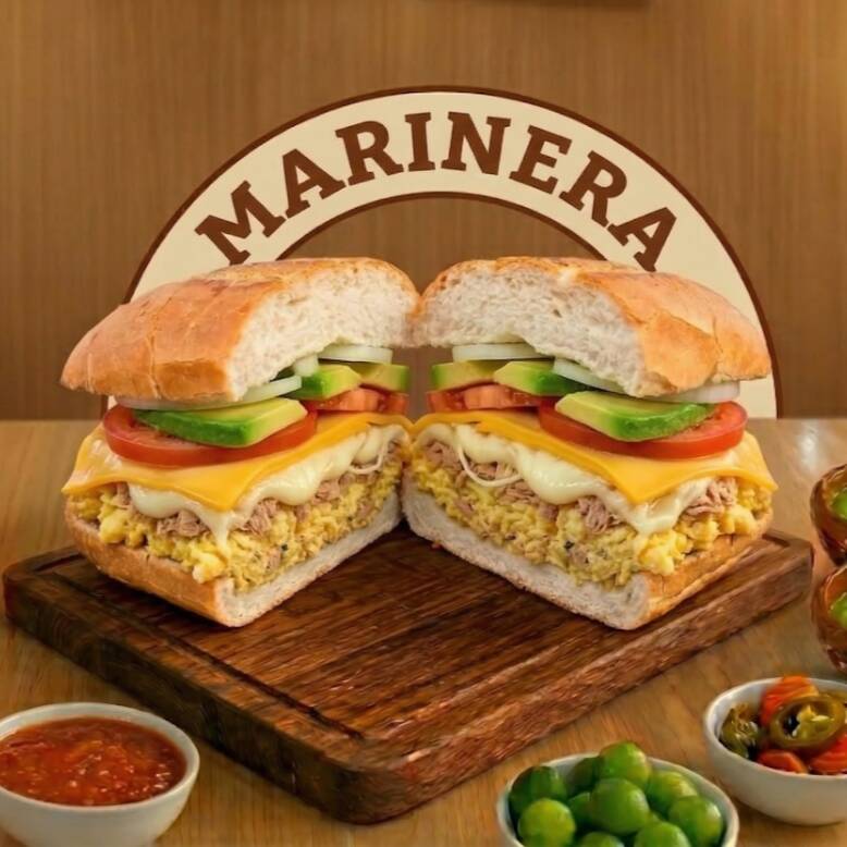 Deliciosa mezcla de atún con huevo, preparada al momento y llena de sabor, acompañada de quesillo fundido, queso amarillo y queso blanco que aportan una textura cremosa y abundante. Se complementa con aguacate cremoso, jitomate fresco y cebolla, todo dentro de un pan dorado por fuera y suave por dentro. Diferente, completa y con un sabor que sorprende. 🌊🔥