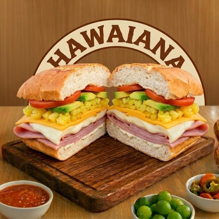 Una combinación irresistible: jamón a la plancha con quesillo fundido y queso amarillo derretido que aportan una textura cremosa. Se complementa con piña que da un toque dulce y jugoso, más aguacate cremoso, jitomate fresco y cebolla. Todo dentro de un pan dorado por fuera y suave por dentro. El balance perfecto entre lo dulce y lo salado. 🍍🔥