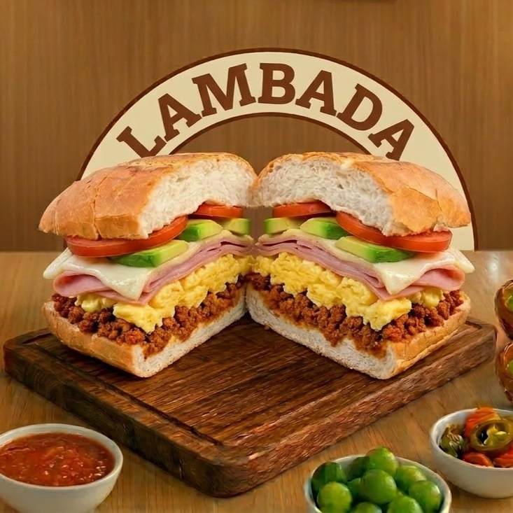 La más completa de la casa: milanesa crujiente, salchicha frita, huevo revuelto, chorizo, jugosa pierna española, jamón y pastor directo del trompo. Todo se combina con quesillo fundido, queso blanco y queso amarillo derretido, más un toque de piña que aporta un contraste dulce irresistible. Incluye aguacate, jitomate y cebolla en pan dorado. Grande, intensa y llena de sabor. 🔥