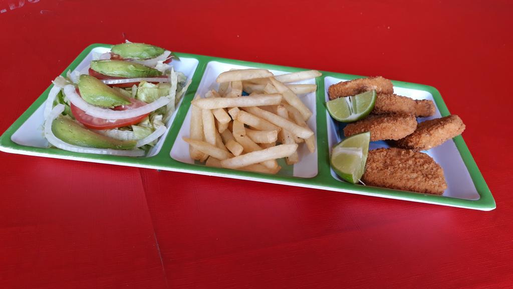 Crema, lechuga, jitomate, cebolla y aguacate