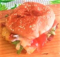 Piña, tocino, jamón, queso amarillo, queso asadero