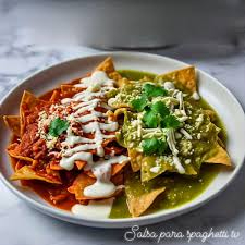 Chilaquiles, en salsas verde y roja, acompañado de frijoles y huevos revueltos o estrellados.