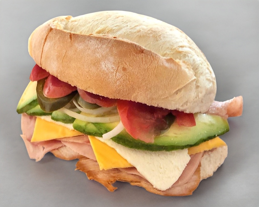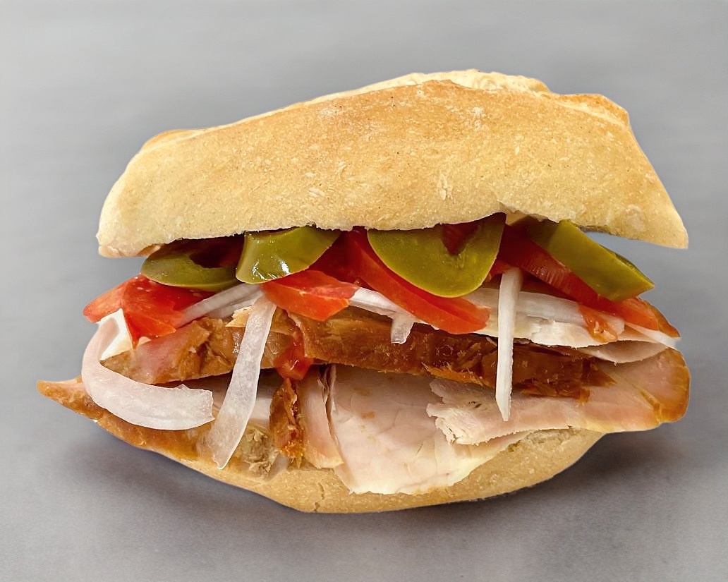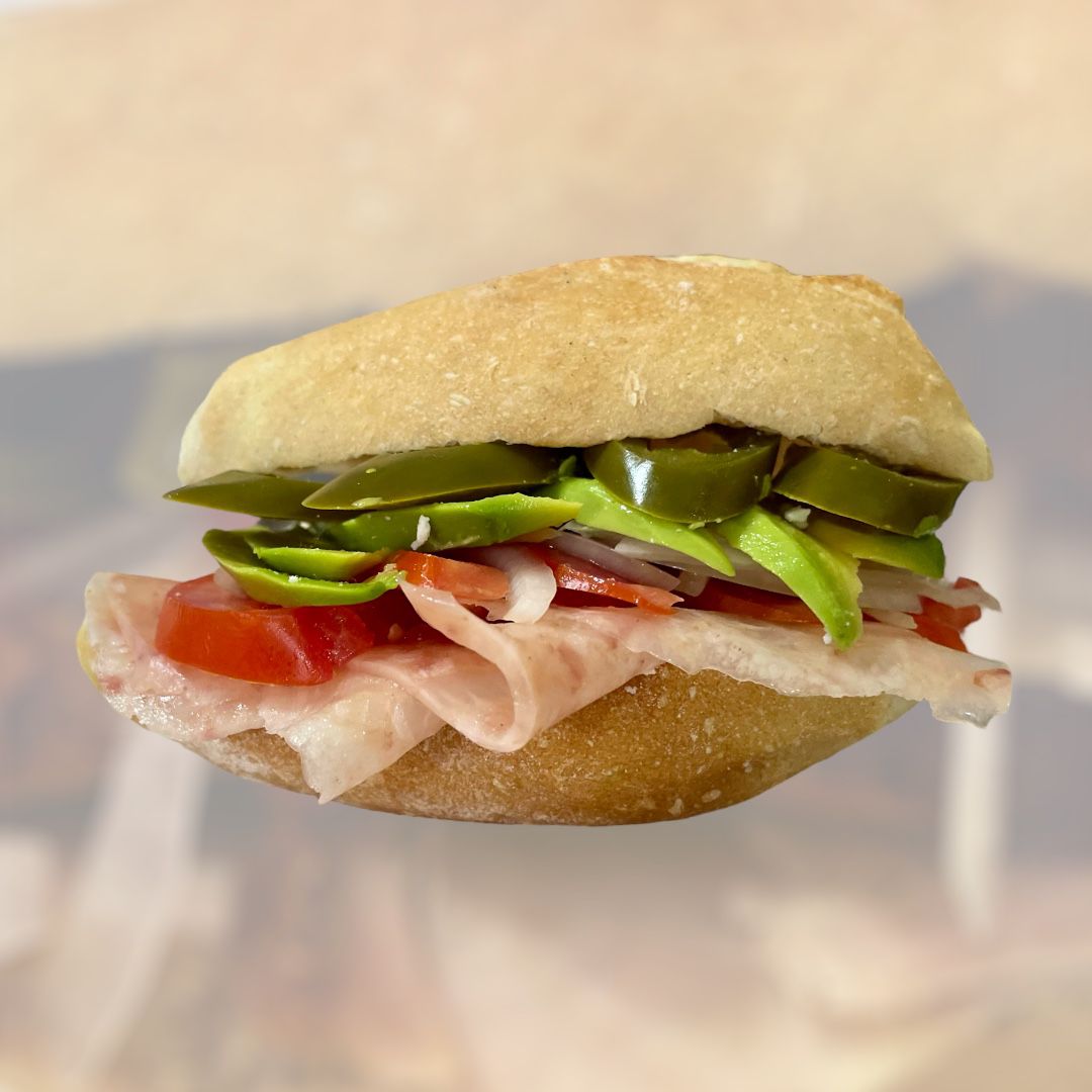 Nuestra deliciosa torta cubana incluye carnitas,jamón,queso de puerco,queso blanco,queso amarillo y aguacate. todos estos ingredientes con su respectivo jitomate,cebolla,chile jalapeño,crema y mostaza
