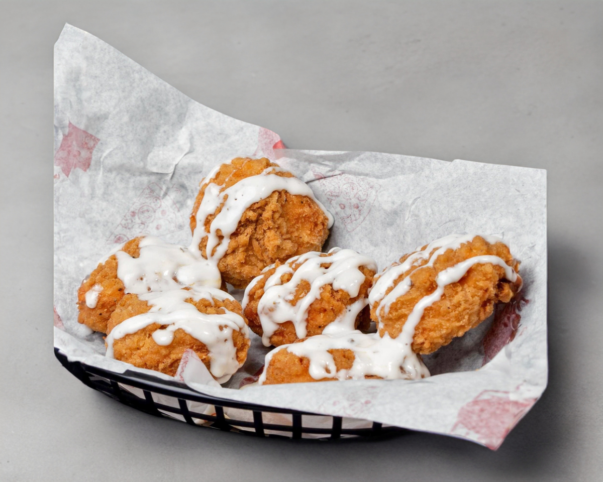 10 piezas de palomitas de pollo acompañadas con salsa a elección.