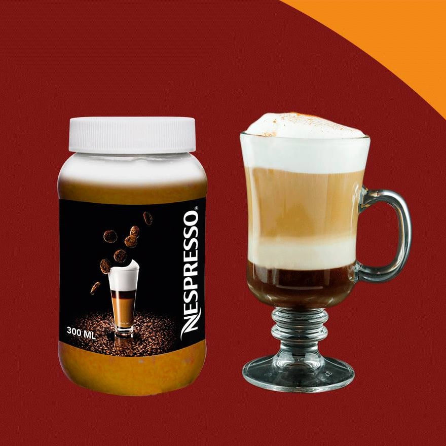 Café Moka Nespresso acompañado con Leche Santa Clara, Hersey y canela, en presentación de 500 ml