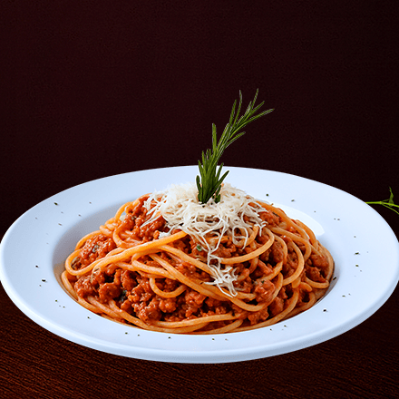 Espaguetti o Fetuccine con la tradicional salsa a la bolognesa con carne molida y verduras en salsa de tomate con queso parmesano.