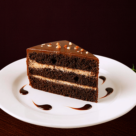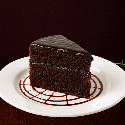 Rebanada de Pastel de chocolate esponjoso y húmedo, con intenso sabor a cacao.