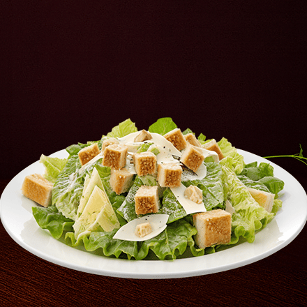 Mix de lechuga italiana, orejona y romana, acompañadas de crutones dorados, queso parmesano y aderezo césar.