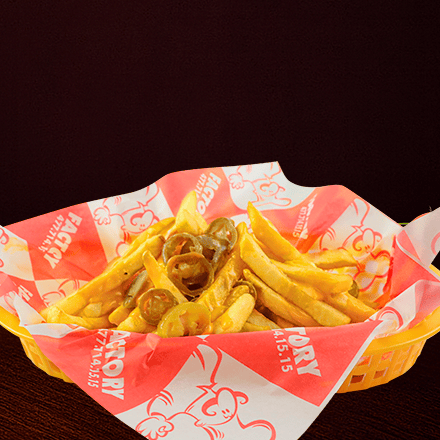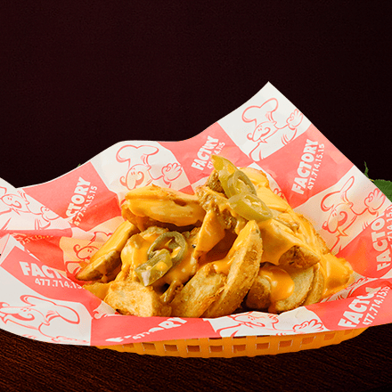 Bañadas con queso cheddar y con chiles jalapeños.