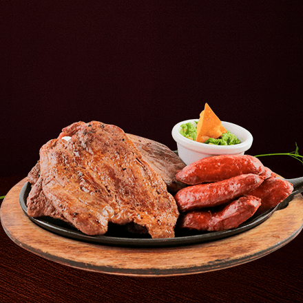 1 kg de nuestra jugosa arrachera acompañada de chorizo a la plancha con guacamole y tortillas calientes.