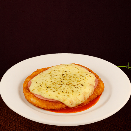 Crujiente milanesa de pollo empanizada, jamón, salsa pomodoro gratín de queso.