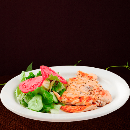 250 gr de nuestro clásico pollo sazonado a la plancha. Elige uno para acompañar: ensalada, o papas fritas.