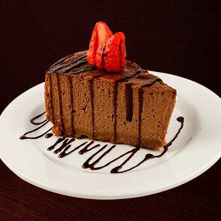 Rebanada de Cheesecake de chocolate cremoso con intenso sabor a cacao y base de galleta.