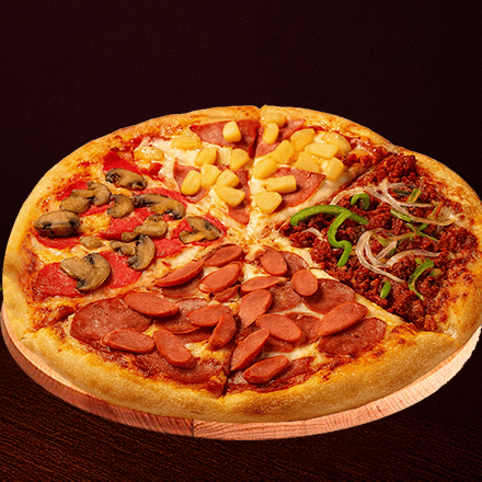 Combinación perfecta de especialidades, pepperoni, hawaiana, salami con salchicha y mexicana.