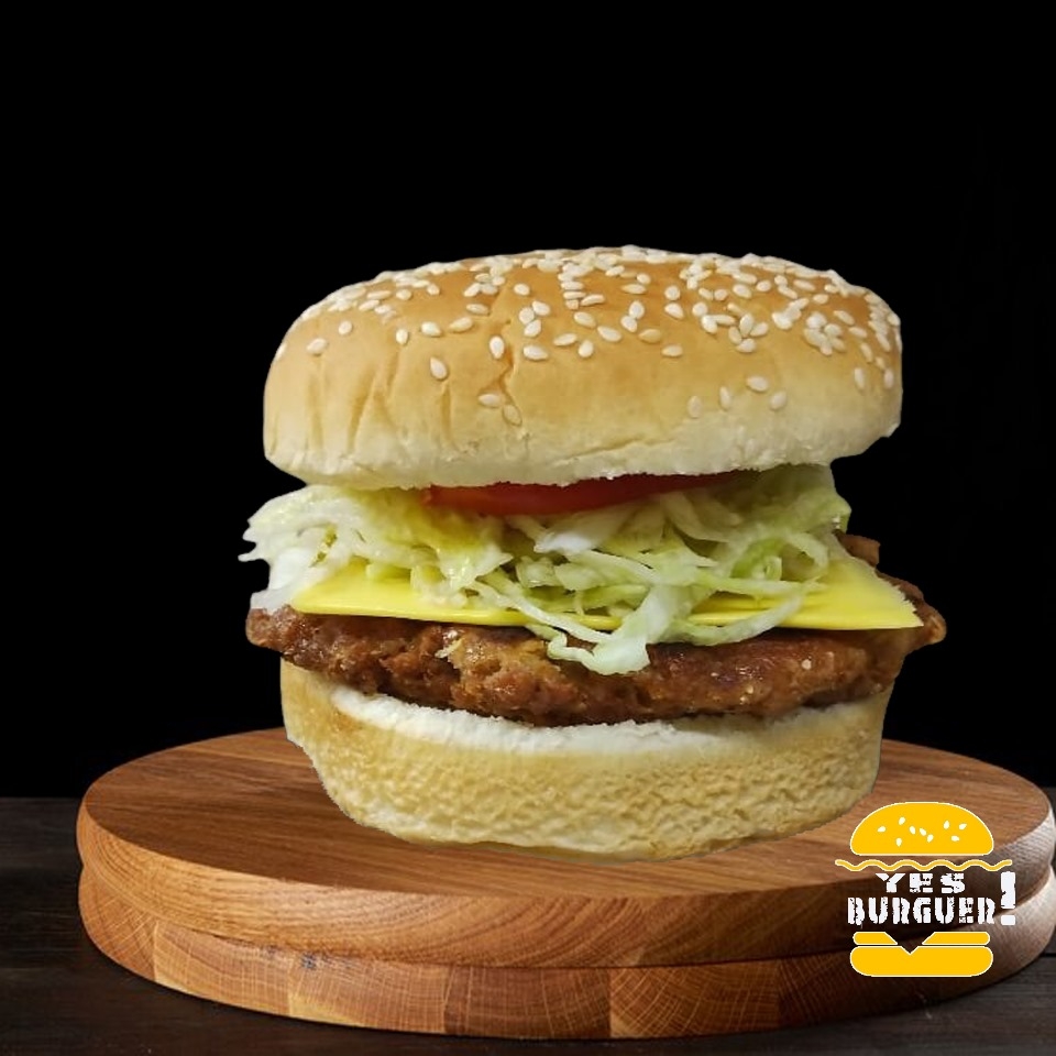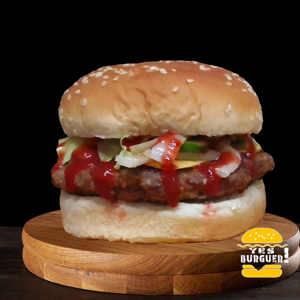 Hamburguesa de res, queso amarillo, lechuga, jitomate, cebolla, jalapeño y aderezos.