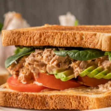 Pan, atún de la casa, mayonesa, queso, tomate, cebolla y aderezo con chipotle.