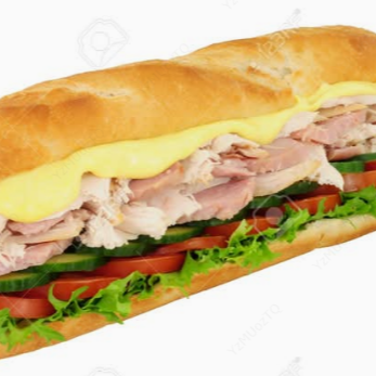 Pollo, jamón de cerdo, queso mozzarella, mayonesa, aguacate, lechuga, tomate, cebolla y aderezo con chipotle.