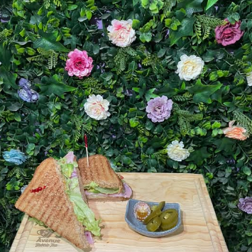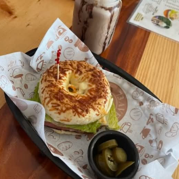 Pan, mayonesa, queso mozzarella, aguacate, lechuga, tomate, cebolla y aderezo con chipotle.
