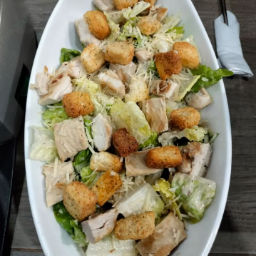 Lechuga, pollo, crotones, queso parmesano, aderezo.