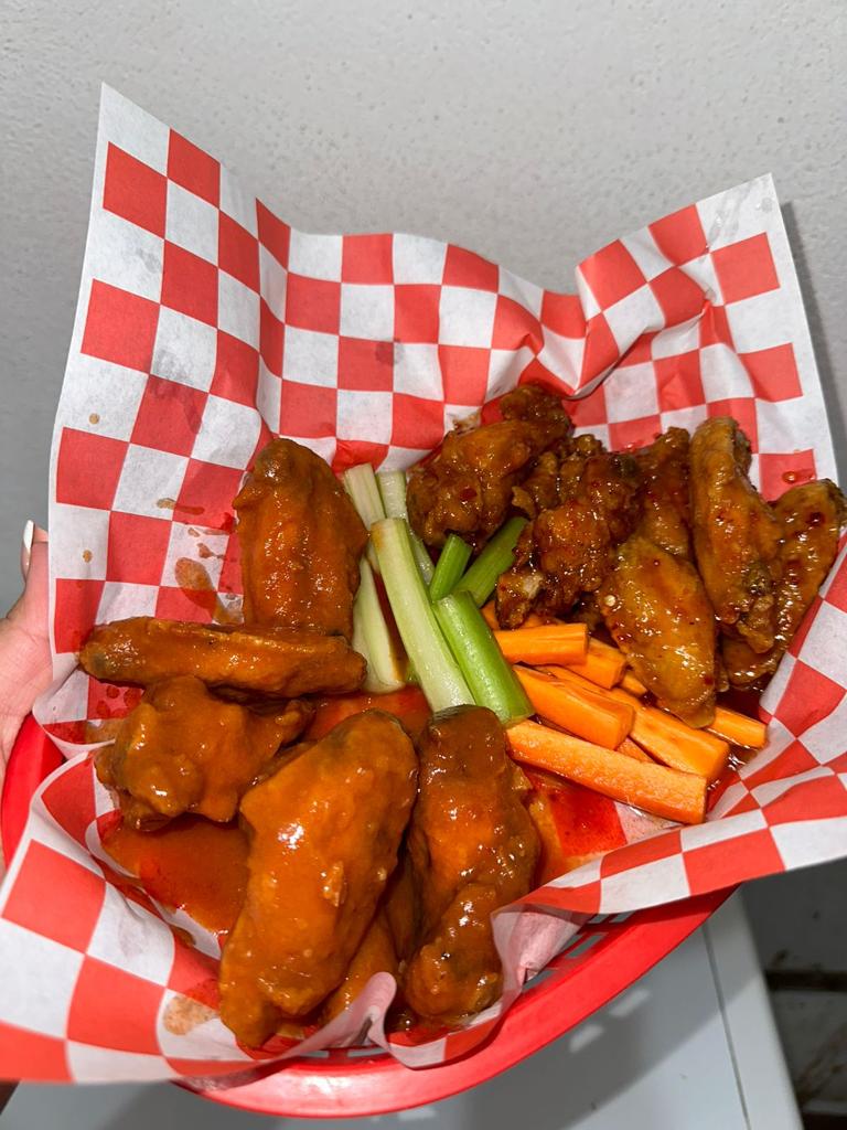 24 Alitas*1 + 1/2 orden papas a la francesa*1 + Aros de Cebolla*1 + 1 Litro agua fresca*1 + Vegetales*1 + Aderezo Ranch*1